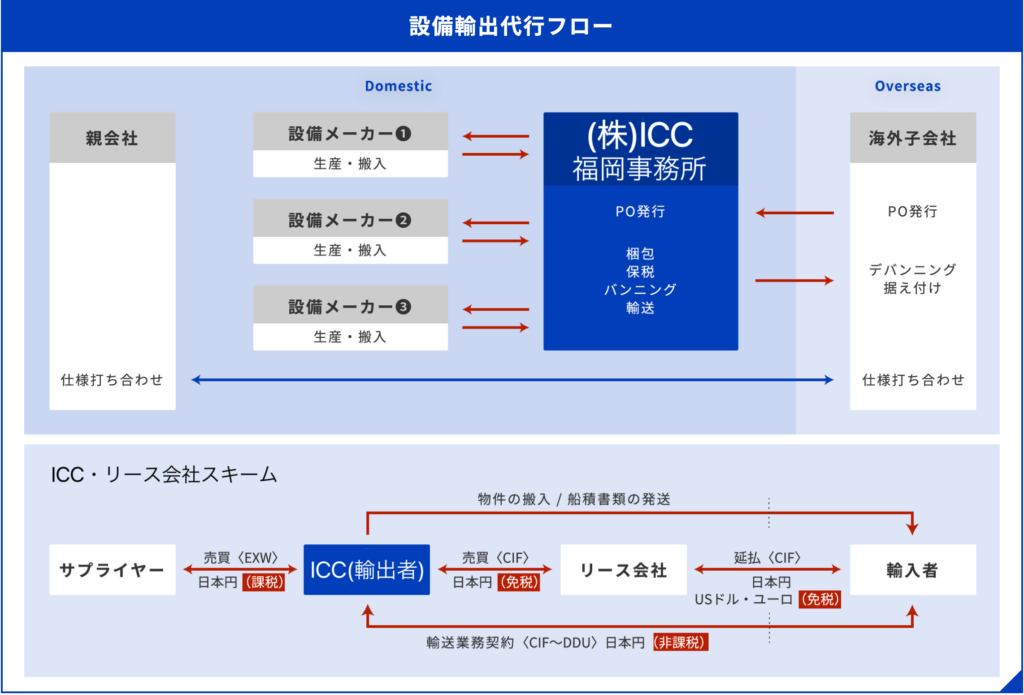 アジア各国の地場では調達ができない部材や化学品の国内調達から輸出手配・納期管理等、煩雑な業務の一括代行も行っており、お客様の現地調達コスト改善へ貢献させて頂いております。